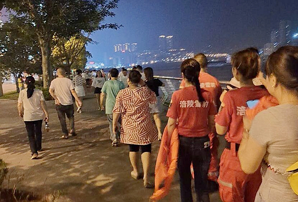 晚上7點(diǎn),雪豹救援隊(duì)近20名隊(duì)員穿著“涪陵雪豹”的服裝在金科大酒店旁進(jìn)行了簡(jiǎn)單集合,然后分成江東濱江路和江南濱江路沿線進(jìn)行巡查,排查隱患險(xiǎn)情,積極勸導(dǎo)在沿江邊觀洪、戲水的市民注意安全遠(yuǎn)離警戒線區(qū)域,并將江邊沿線設(shè)置的警戒帶進(jìn)行了牽引。