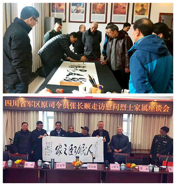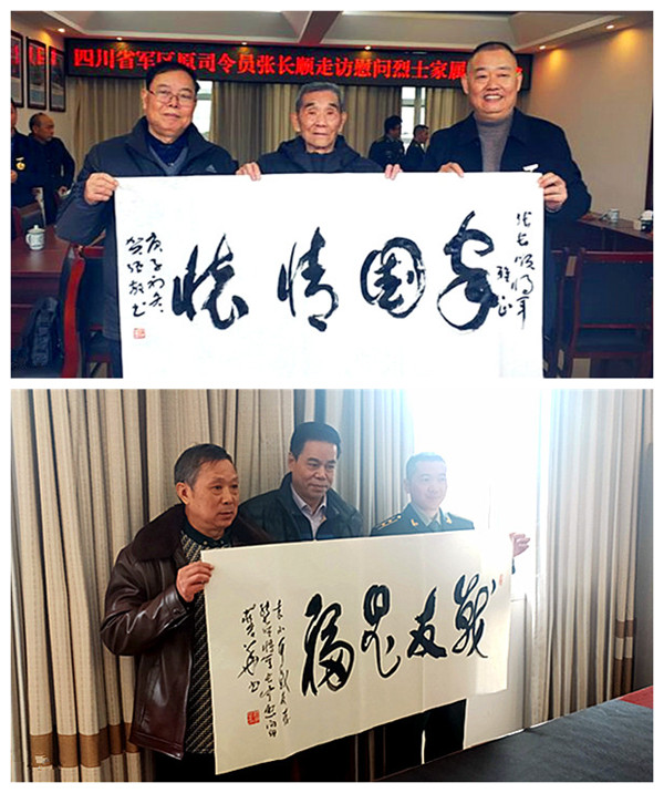 退休后的莊宏華司令員熱愛書法,是四川國防詩書畫院的執(zhí)行院長、著名軍旅書法家。莊司令員不顧旅途勞頓,現(xiàn)場揮毫潑墨,以豪放之筆,書英烈之魂,字如游龍,心似潮涌,展風(fēng)骨,獻(xiàn)愛心,揚正氣,抒情懷,為烈士親屬和現(xiàn)場嘉賓現(xiàn)場創(chuàng)作和奉獻(xiàn)了眾多精美的書法藝術(shù)作品。