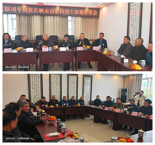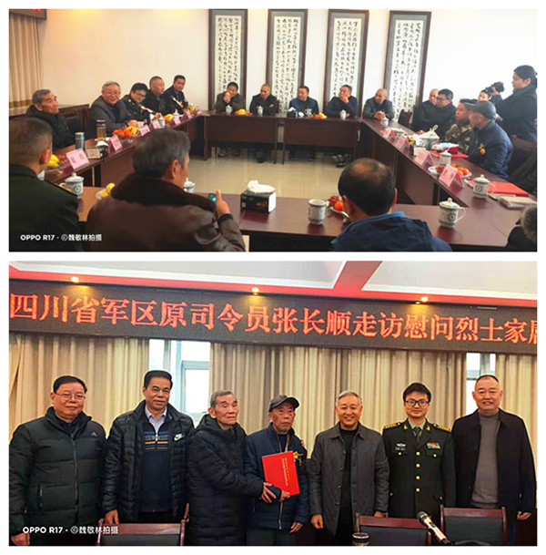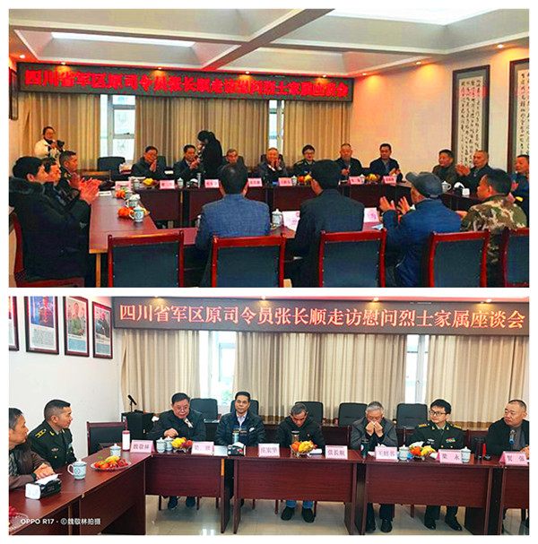 將軍一行上午九時到達(dá)長寧,在長寧縣武裝部會議室,當(dāng)?shù)攸h政軍領(lǐng)導(dǎo)和有關(guān)部門舉行了張將軍一行看望慰問葉志剛烈士親屬的見面會。宜賓市和長寧縣參加慰問活動的領(lǐng)導(dǎo)主要有:宜賓軍分區(qū)副司令員梁永,宜賓市退役軍人事務(wù)局黨組成員、副局長賀強,中共長寧縣委副書記陳勝軍,長寧縣人武部政委彭俊杰,長寧縣退役軍人事務(wù)局局長黃華,長寧縣退役軍人事務(wù)局副局長梁登海,長寧縣退役軍人事務(wù)局黨組成員、服務(wù)中心主任車鑫,長寧縣退役軍人事務(wù)局辦公室副主任袁治,宜賓軍分區(qū)政工科副團職干事蒲興友,葉志剛烈士的生前戰(zhàn)友,宜賓市廣東商會張錦操會長等30余人參見了見面會。葉志剛烈士的父親、84歲高齡的葉良均老人到會面見了張長順將軍一行。