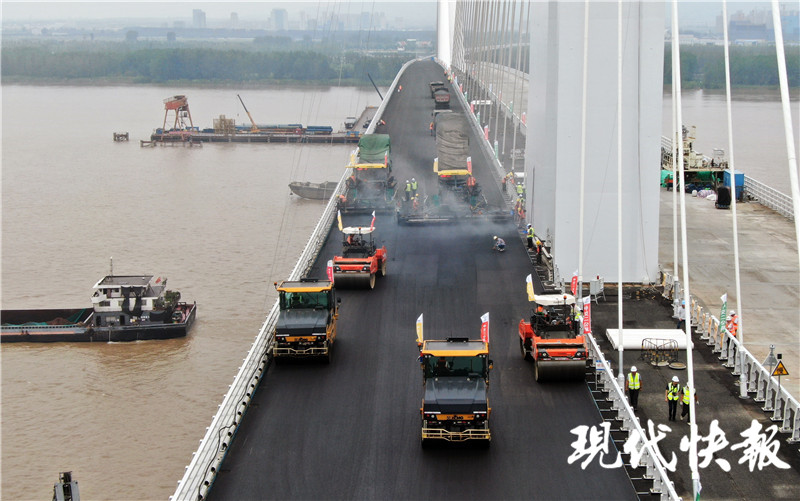 “穿新衣”啦!南京長(zhǎng)江五橋開(kāi)始攤鋪瀝青