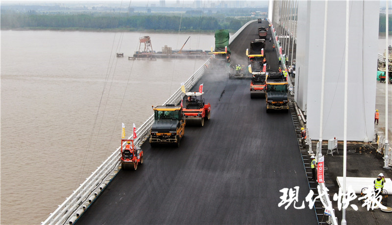 南京長(zhǎng)江五橋開(kāi)始攤鋪瀝青