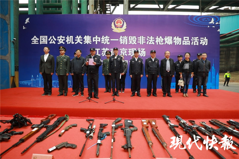 江蘇省公安廳黨委副書記、常務(wù)副廳長尚建榮,省和南京市打擊整治槍支爆炸物品違法犯罪聯(lián)席會(huì)議部分成員單位和社會(huì)各界代表,在南鋼中心現(xiàn)場參加銷毀活動(dòng)。
