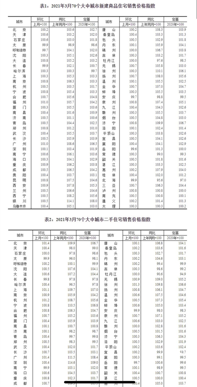 同時(shí),各線(xiàn)城市商品住宅銷(xiāo)售價(jià)格同比漲幅繼續(xù)上升。繩國(guó)慶分析,主要受上年同期低基數(shù)影響,各線(xiàn)城市商品住宅銷(xiāo)售價(jià)格同比漲幅均有所擴(kuò)大。據(jù)測(cè)算,3月份,一線(xiàn)城市新建商品住宅和二手住宅銷(xiāo)售價(jià)格同比分別上漲5.2%和11.4%,漲幅比上月分別擴(kuò)大0.4和0.6個(gè)百分點(diǎn)。二線(xiàn)城市新建商品住宅和二手住宅銷(xiāo)售價(jià)格同比分別上漲4.8%和3.3%,漲幅比上月分別擴(kuò)大0.3和0.4個(gè)百分點(diǎn)。三線(xiàn)城市新建商品住宅和二手住宅銷(xiāo)售價(jià)格同比分別上漲3.9%和2.3%,漲幅比上月分別擴(kuò)大0.3和0.4個(gè)百分點(diǎn)。