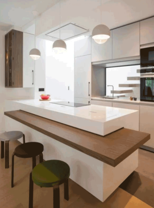 好了,一個(gè)島臺(tái)的實(shí)用性設(shè)計(jì)就說到這了,如果你不喜歡這種的話,其實(shí)下面這三種隱藏式設(shè)計(jì)也是不錯(cuò)的: