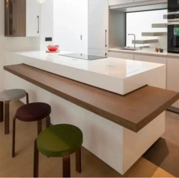 說到開放式廚房,就不得不提它的標(biāo)配,島臺(tái)了,島臺(tái)的設(shè)計(jì)有時(shí)候也要講究方法,可很大提升利用率。就如今天齊家安安要講到的這個(gè)島臺(tái)設(shè)計(jì),在島臺(tái)多裝一塊移動(dòng)板,可以實(shí)現(xiàn)烹飪臺(tái)面、餐桌到吧臺(tái)三個(gè)功能的隨意切換,空間利用率超高。