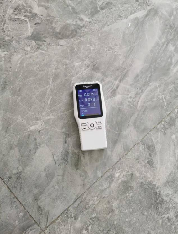 用同樣的方法,黃女士對客廳的沙發(fā)和瓷磚進行甲醛檢測,結果顯示沙發(fā)的甲醛含量為0.09mg/m³,TVOC(總揮發(fā)性有機化合物)為0.63mg/m³;瓷磚的甲醛含量為0.014mg/m³,TVOC(總揮發(fā)性有機化合物)為0.098mg/m³。沙發(fā)和瓷磚的AQI(空氣質量指數)顯示均為“優(yōu)”。
