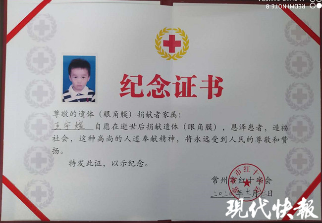 2020年7月12日,王宇煊永遠地離開了這個世界,離開了悉心照顧他十多年的爺爺奶奶。這一天,他捐出了自己的眼角膜,在常州市紅十字會的幫助下,一名飽受失明之苦的陌生人接受了這份愛的饋贈,重見了光明。