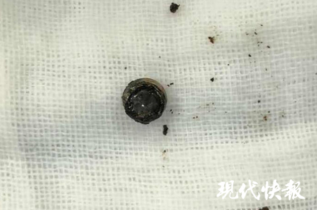 △醫(yī)生取出的電池 通訊員供圖