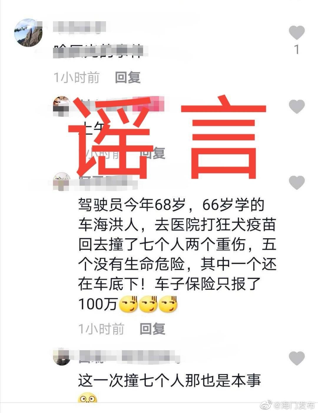隨后,海門區(qū)委宣傳部官方微博也發(fā)布相關(guān)消息,并表示事故發(fā)生后,微信朋友圈、抖音等網(wǎng)絡(luò)平臺(tái),有不明真相的網(wǎng)民在傳播悅來(lái)鎮(zhèn)車禍致多人死亡的不實(shí)信息,望廣大市民、網(wǎng)民不造謠、不信謠、不傳謠。