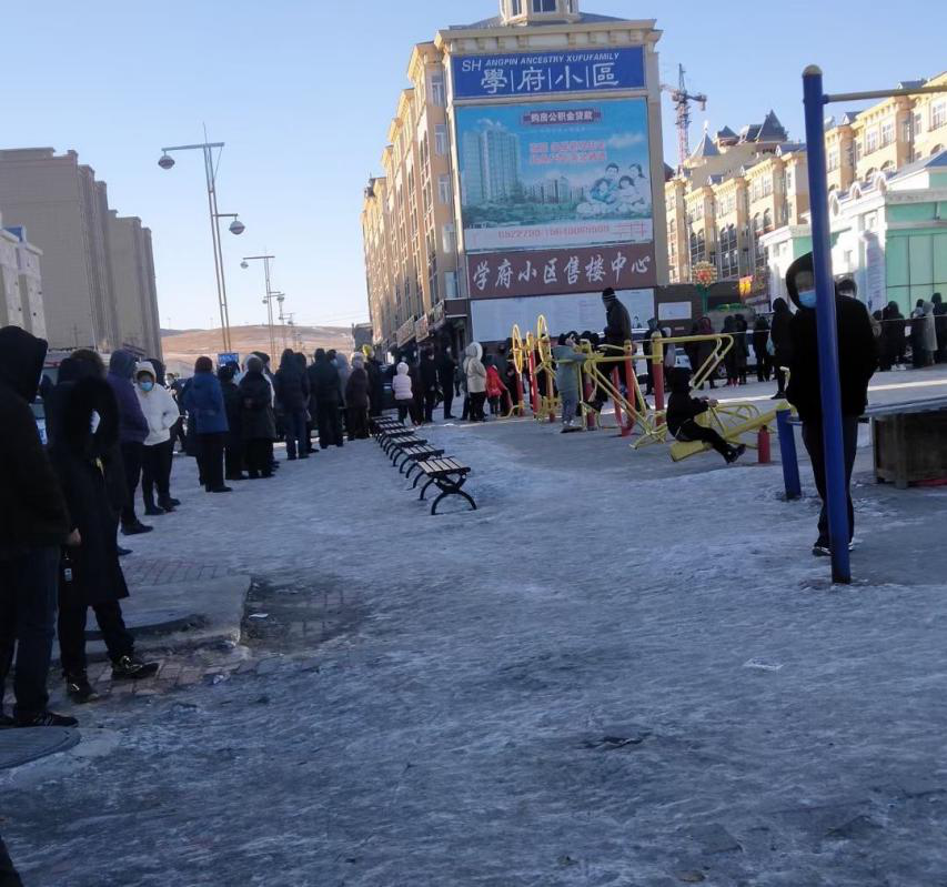 滿洲里市民正在排隊進行核酸檢測,受訪者供圖。