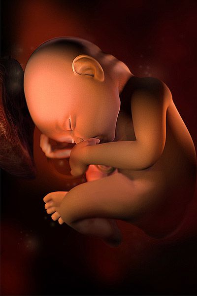 肺與消化系統(tǒng)基本上已完全形成。寶寶在子宮內(nèi)有微弱的視力,往孕婦的肚子實(shí)施照明時(shí),會(huì)移動(dòng)頭部,有時(shí)會(huì)為了觸摸光線而伸手。一種保護(hù)性的脂肪堆積在他的皮膚下,填充他(她)的胳膊和腿。