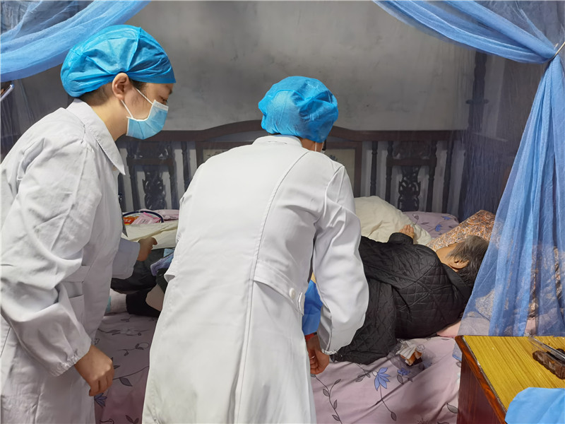 △蘇北人民醫(yī)院的護(hù)士在翟女士家中為她護(hù)理