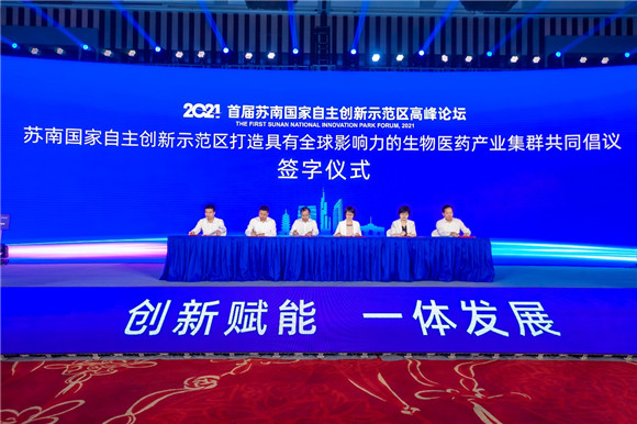 江蘇是生物醫(yī)藥產(chǎn)業(yè)大省,蘇南地區(qū)更是江蘇的核心板塊。首屆論壇作為2021南京創(chuàng)新周的重點(diǎn)活動(dòng),與會(huì)嘉賓圍繞生物醫(yī)藥產(chǎn)業(yè)創(chuàng)新發(fā)展進(jìn)行深入探討?,F(xiàn)場(chǎng)還簽署了“蘇南國(guó)家自主創(chuàng)新示范區(qū)打造具有全球影響力的生物醫(yī)藥產(chǎn)業(yè)集群共同倡議”。