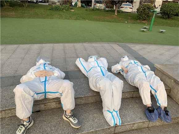 祿口街道第二次采集核酸工作開始,我同時(shí)負(fù)責(zé)三個(gè)點(diǎn)的人員協(xié)調(diào)調(diào)度。有的采集點(diǎn)需要上門采集,穿隔離服坐著工作尚且悶熱難耐,更何況穿著爬樓挨家挨戶走訪采集。