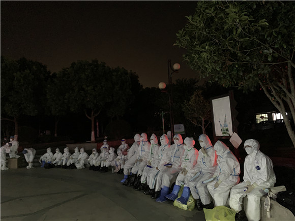 00:30,我們正式開始工作,直到05:30,支援我們的隊(duì)伍到來,才得以休息。大家都躺在地上不愿起來,有點(diǎn)隊(duì)員連脫掉防護(hù)服的力氣都沒有。從看到繁星點(diǎn)點(diǎn),到聽到雄雞報(bào)曉,這一夜十分漫長。