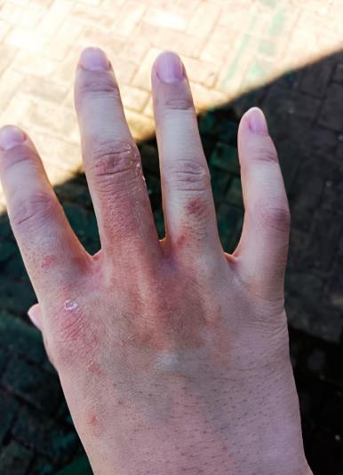 這次祿口疫情來(lái)得突然,外派支援祿口的任務(wù)也很緊急,貢楚楚在得知外派任務(wù)后第一時(shí)間報(bào)了名。三十幾度的夏天,天氣極度炎熱,穿上密不透風(fēng)的防護(hù)服,穿梭在樓道之間,一家一戶敲門(mén),認(rèn)真登記每一個(gè)人的名字,身份證號(hào),一遍遍核對(duì),生怕有一絲一毫的錯(cuò)誤……這是貢楚楚每天的日常。每次脫下防護(hù)服時(shí),她都全身濕透,由于對(duì)滑石粉過(guò)敏,脫下手套時(shí)手上奇癢無(wú)比、全是紅疹。即使涂了藥,好了一些后她又重新戴上手套,再次武裝整齊出發(fā)了。頻繁的手衛(wèi)生消毒,讓她的手被酒精燒灼得通紅,手上也蛻了一層又一層的皮,但身上的使命感卻讓她從來(lái)沒(méi)有抱怨過(guò)一句。