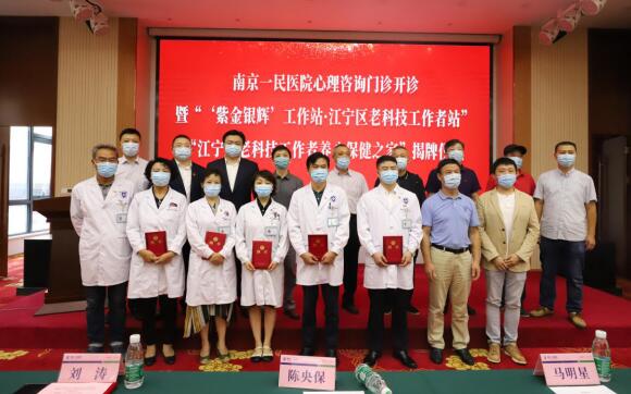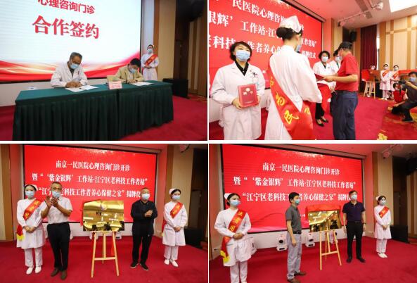 隨后,現(xiàn)場進(jìn)行了南京一民醫(yī)院心理咨詢門診簽約儀式及南京一民醫(yī)院心理咨詢門診開診暨“‘紫金銀輝’工作站·江寧區(qū)老科技者工作站”“江寧區(qū)老科技工作者養(yǎng)心保健之家”揭牌儀式。南京市江寧區(qū)老科技工作者協(xié)會會長陳央保、南京一民醫(yī)院黨總支書記、董事長劉大林共同為“紫金銀輝”工作站·江寧區(qū)老科技者工作站揭牌;南京市江寧區(qū)科學(xué)技術(shù)協(xié)會副主席馬明星、南京市江寧區(qū)心理學(xué)會副理事長、南京醫(yī)科大學(xué)馬克思主義學(xué)院院長、教授鄭愛明共同為“江寧區(qū)老科技工作者養(yǎng)心保健之家”揭牌,并由江寧區(qū)老科技工作者協(xié)會副會長龐聲凱頒發(fā)聘書。最后,在南京一民醫(yī)院工作人員的帶領(lǐng)下,活動參與人員共同參觀醫(yī)院,并合影留念。