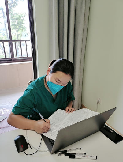 隔離酒店作為疫情防控的首個(gè)安全屏障,承接著來自不同地域的人群,有兒童、孕婦、老年人、焦慮癥、抑郁癥、基礎(chǔ)病患等各類人員。醫(yī)務(wù)人員不僅要為他們登記信息、流調(diào)篩查、監(jiān)測體溫、核酸采樣,還要持續(xù)跟進(jìn)處理隔離期間出現(xiàn)的各種問題。天氣變化多端,她們通過微信群提醒隔離人員做好防寒保暖、疾病預(yù)防;結(jié)束一天的工作之后,還要對著數(shù)據(jù)處理到深夜;半夜握著手機(jī)入睡,生怕錯(cuò)過實(shí)時(shí)轉(zhuǎn)運(yùn)信息;調(diào)好鬧鐘,半夜爬起來查詢核酸結(jié)果,看到陰性才能安心入睡;天還沒亮就爬起來,為大家做好解除隔離工作,不耽誤解除隔離的時(shí)間……