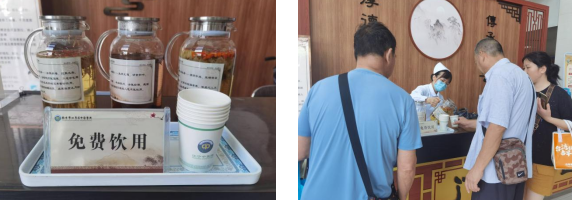 一杯中醫(yī)降暑茶飲:夏季氣候濕熱,醫(yī)院根據(jù)氣候特點,充分發(fā)揮中醫(yī)藥特色,每天在門診大廳,免費為患者提供中藥消暑茶飲、祛濕茶飲。