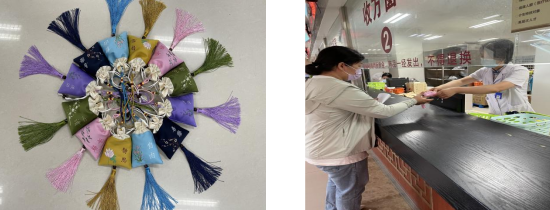 一個中藥保健香囊:院精選道地藥材,嚴格調(diào)制配方,精心制作了具有扶助正氣、醒腦開竅、驅(qū)蟲殺毒功效的中藥防病香囊,結(jié)合“中醫(yī)藥就在你身邊”健康巡講等活動免費發(fā)放。