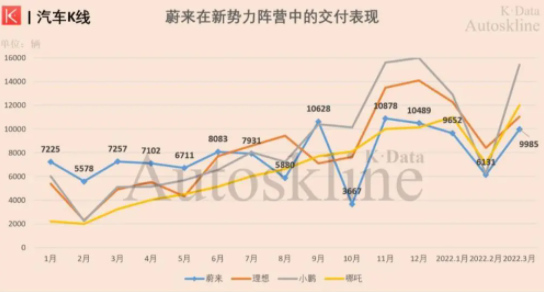 然而,這一方的合作,也不是安枕無憂。從去年7月開始,蔚來汽車的月度交付量,相繼被理想、小鵬、哪吒反超,截至3月數(shù)據(jù)仍未翻盤。這對江淮汽車而言就有些被動了,有可能直接影響到江淮汽車的產(chǎn)銷量表現(xiàn),乃至經(jīng)營業(yè)績,而廣汽與蔚來的合作品牌表現(xiàn)也不盡人意。