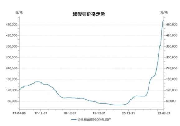 從各大車企發(fā)布的漲價聲明中可以發(fā)現(xiàn),原材料價格上漲傳導至整車是主要原因。新能源汽車各部件對原材料依賴性較強,動力電池是新能源汽車的核心部件,而動力電池的關(guān)鍵原材料碳酸鋰去年以來價格一路高漲,其中碳酸鋰價格從去年初的6.8萬元/噸持續(xù)上漲到如今的約50萬元/噸,目前還呈現(xiàn)上漲趨勢。原材料大漲價,促使車企的造車成本短期內(nèi)難以降下來,繼而形成普遍漲價的市場局面。正因如此,榮威新能源“4月不漲價”這一舉措顯得更加可貴,不愧是被網(wǎng)友譽為“良心車企”。