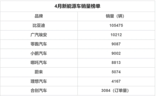 4月新能源銷量排名出爐!理想跌到第7,