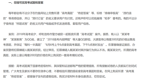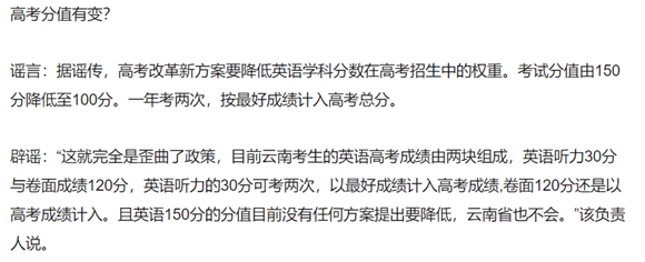 辟謠文章:高考謠言及防范提醒——考試版