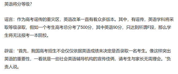 謠言10:高考英語(yǔ)將分等級(jí)