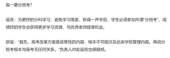 謠言11:高一要分班考試