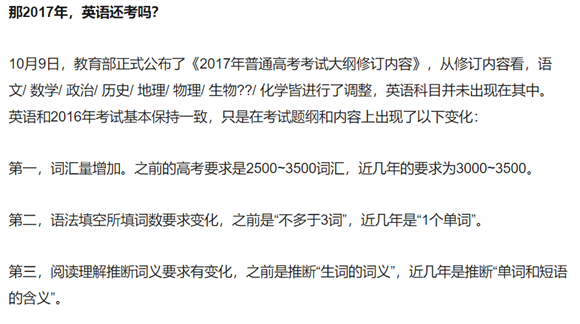 關(guān)鍵詞:考試改革、高考大綱、取消英語(yǔ)