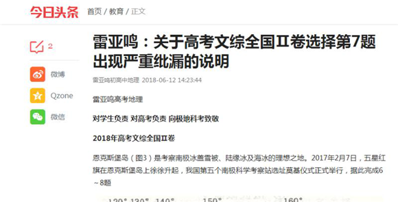 辟謠文章:關(guān)于高考文綜全國(guó)II卷選擇第7題出現(xiàn)嚴(yán)重紕漏的說(shuō)明