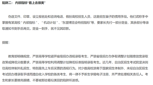 辟謠文章:廣西考試院特別提醒:警惕招生陷阱 謹(jǐn)防上當(dāng)受騙