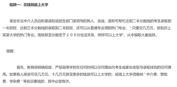關(guān)鍵詞:中介、熟人、交錢(qián)、包上大學(xué)