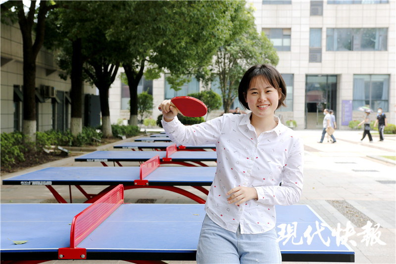 走到臺下,18歲的楊程被家長們團團圍住,變身“招生官”。當聽說她不上輔導班,眼睛也只是稍有些近視,家長們都覺得不可思議。“其實不上輔導班,可以有自己的時間去有針對性的學習。”楊程自有自己的學習節(jié)奏。為什么眼睛那么好?那是因為楊程每天都堅持運動 ,特別是乒乓球有臺子就要打一陣子。校園里那個一手夾著小說,一手夾著乒乓球拍的女生,就是楊程。