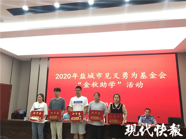 (通訊員 陳希 陳小蛟 記者 姜振軍)8月14日,鹽城市見(jiàn)義勇為基金會(huì)舉行2020年“金秋助學(xué)”活動(dòng), 對(duì)符合條件的45名見(jiàn)義勇為人員子女發(fā)放助學(xué)金12.6萬(wàn)元,用實(shí)際行動(dòng)為品學(xué)兼優(yōu)的見(jiàn)義勇為人員子女提供幫助。