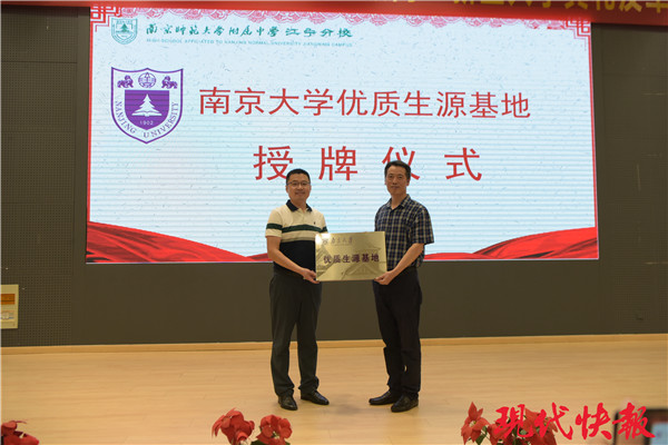(記者 舒越)8月20日,南京師范大學(xué)附屬中學(xué)江寧分校舉行“夢想啟航”2020年高一新生入學(xué)典禮,迎接390多名“萌新”。南京大學(xué)本科招生辦公室主任李浩也來到現(xiàn)場,并向?qū)W校頒發(fā)“南京大學(xué)優(yōu)質(zhì)生源基地”牌匾。