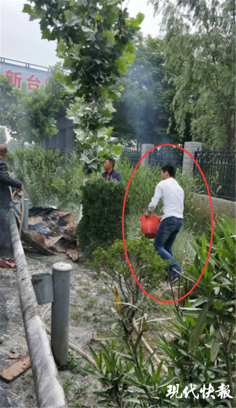 此時(shí),正在家門(mén)口打掃衛(wèi)生的江蘇海洋大學(xué)化學(xué)工程學(xué)院在校大學(xué)生王維聽(tīng)到喊聲,急忙放下手中掃帚,跑進(jìn)廚房提起水桶就朝離家200米遠(yuǎn)著火的地方趕去。