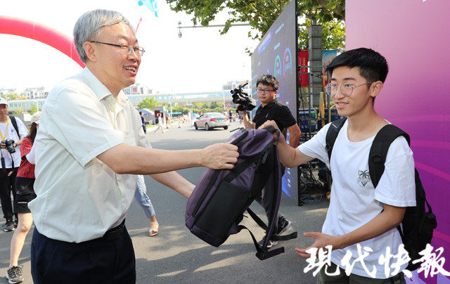 △南大校長呂建為新生發(fā)放禮包 佘治駿 攝