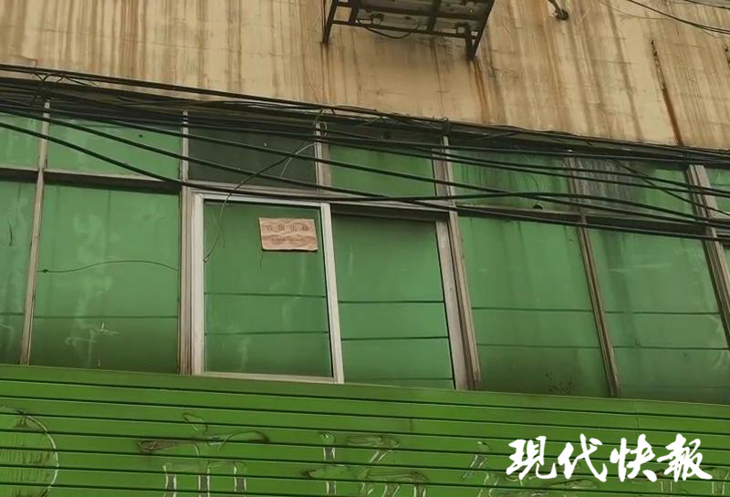 9月15日上午,記者來到連云港市海州區(qū)市場(chǎng)街,道路兩旁都是門面房,在朝西的一排門面房中間,就是曾經(jīng)的“市場(chǎng)街雙語幼兒園”。這是一幢三層高的樓房,所有門窗緊閉,一樓有兩個(gè)卷簾門,卷簾門已經(jīng)銹跡斑斑,二樓和三樓綠色的窗玻璃很突出,三樓的窗戶上還留著“中班”和“學(xué)前班”字樣,一樓綠色招牌上的字已被全部清除,但隱約還能看到“市場(chǎng)街雙語幼兒園(學(xué)前班)”的字跡,右下角還有一個(gè)電話。