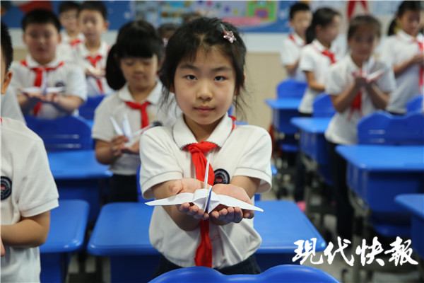 南京孩子們折千紙鶴祈愿和平