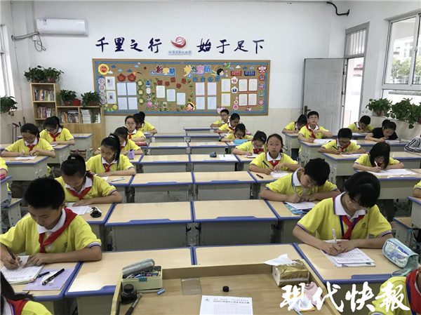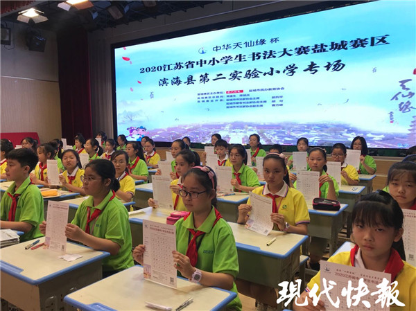 9月21日下午,濱海縣實(shí)驗(yàn)小學(xué)和濱??h第二實(shí)驗(yàn)小學(xué)的比賽正式開始?,F(xiàn)代快報(bào)記者在現(xiàn)場(chǎng)看到,學(xué)生們都穿著統(tǒng)一的校服,戴著紅領(lǐng)巾,正襟危坐,一筆一畫地書寫著。