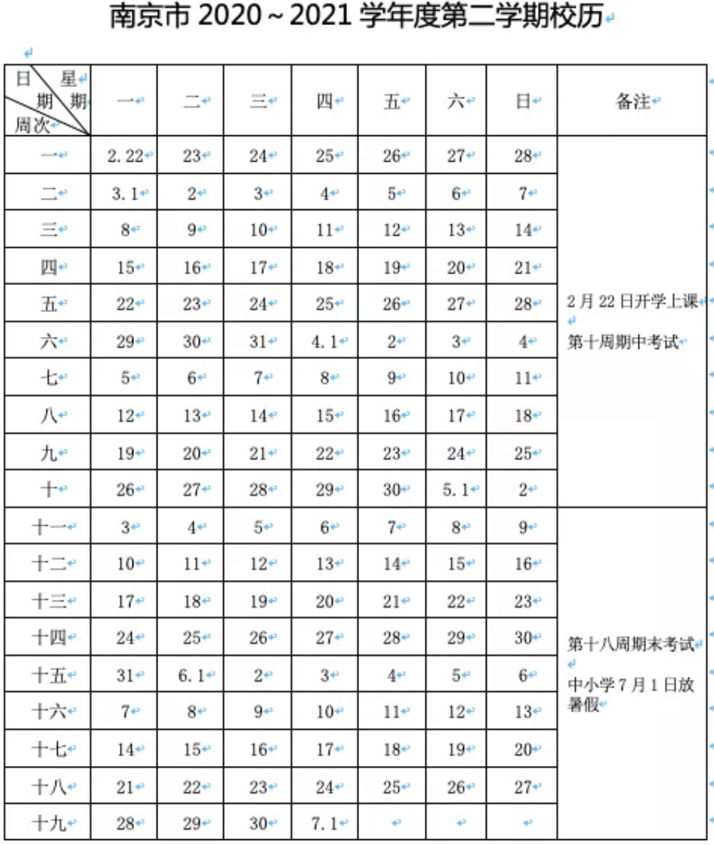 (記者 黃艷 舒越)孩子們,寒假已余額不足啦。根據(jù)江蘇省教育廳發(fā)布的《關(guān)于做好2021年中小學(xué)幼兒園寒假工作的通知》,全省中小學(xué)幼兒園將于2月22日開(kāi)學(xué)上課。2月19日,現(xiàn)代快報(bào)記者了解到,南京中小學(xué)新學(xué)期校歷出爐:2月22日開(kāi)學(xué)上課,第十周期中考試,第十八周期末考試,中小學(xué)7月1日放暑假。
