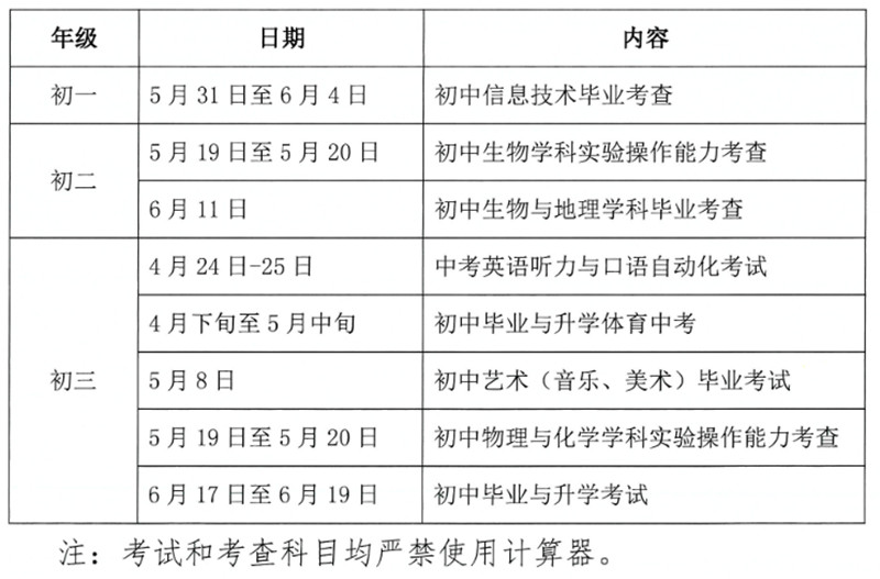 考查科目包括生物、地理、理化生實驗操作、勞動技術操作能力、信息技術等。考查科目成績分為“合格”與“不合格”兩類,生物、地理考查用時均為60分鐘,信息技術考查用時45分鐘,其他考查科目根據學科要求確定測試用時。