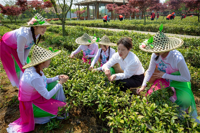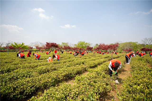 句容茶園里開設(shè)“微黨課”500多名“紅馬甲”點綴綠茶園