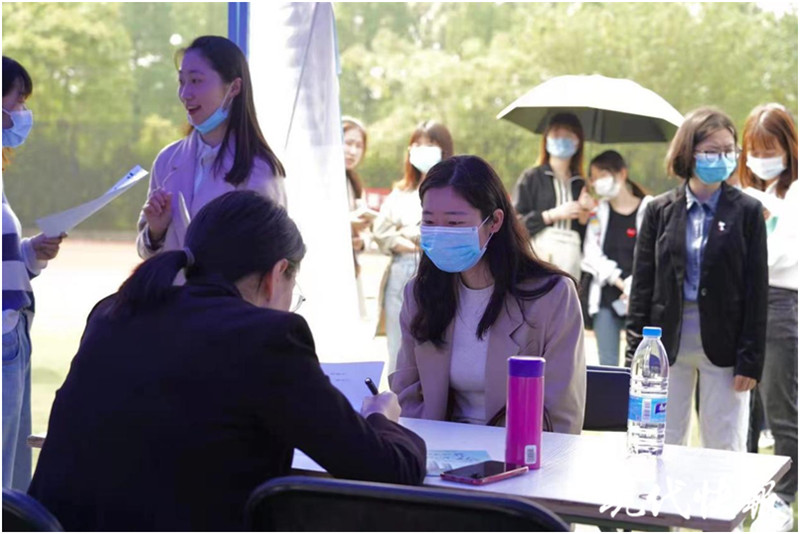 (通訊員 王慧 王彤 記者 舒越)4月29日,南京財(cái)經(jīng)大學(xué)仙林校區(qū)西苑操場十分熱鬧。“寧聚英才樂業(yè)金陵”暨南京財(cái)經(jīng)大學(xué)2021屆畢業(yè)生春季招聘會正熱烈開展。經(jīng)精心篩選,嚴(yán)格審核,400余家企業(yè)攜1600余種職位前來招聘,崗位需求超3萬,涵蓋了互聯(lián)網(wǎng)、金融、教育、制造、建筑、科學(xué)研究和技術(shù)服務(wù)業(yè)等諸多領(lǐng)域,吸引了本校4700余名2021屆畢業(yè)生前來現(xiàn)場應(yīng)聘。