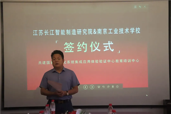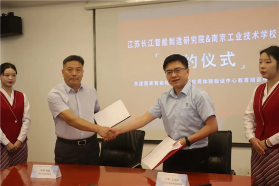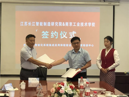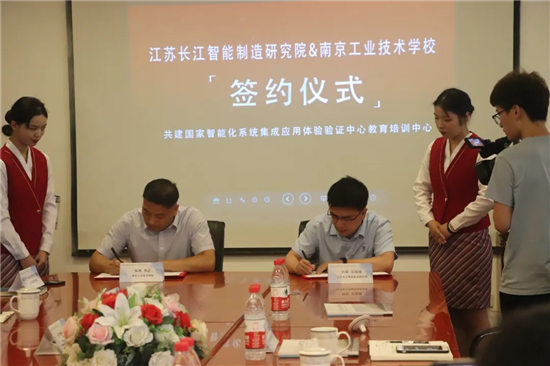 江蘇長江智能制造研究院與南京工業(yè)技術(shù)學(xué)校共建國家智能化系統(tǒng)集成應(yīng)用體驗驗證中心教育培訓(xùn)中心的簽約儀式,于6月23日在南京工業(yè)技術(shù)學(xué)校圓滿落幕。