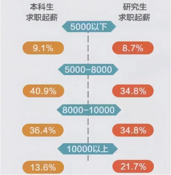 這樣一看本科生和研究生的差距并非一星半點(diǎn),工作后底薪就差2000元以上,也是讓人唏噓不已。