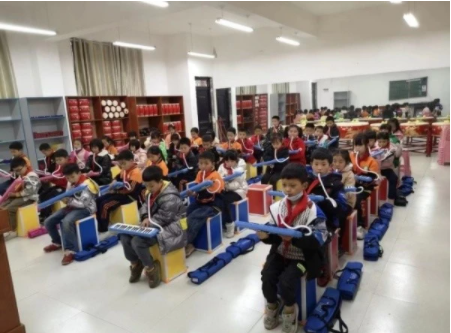 學(xué)生在進行口風(fēng)琴練習(xí)
