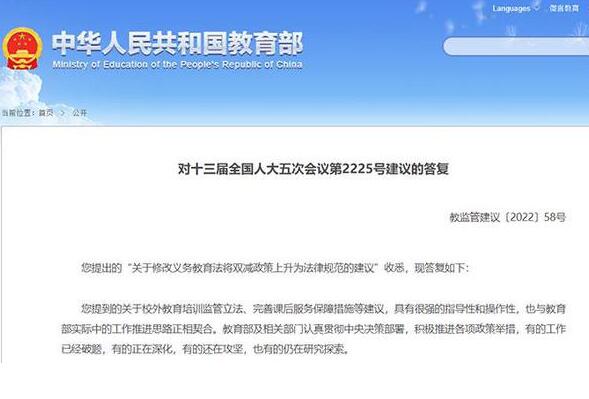 答復(fù)表示,教育部已啟動(dòng)了校外培訓(xùn)立法研究,重點(diǎn)研究理順校外培訓(xùn)立法與現(xiàn)有法律、法規(guī)、政策的關(guān)系,對(duì)相關(guān)實(shí)踐進(jìn)行總結(jié),對(duì)一些難題(如怎樣確定校外培訓(xùn)立法的定位,應(yīng)該以什么層級(jí)、形式、程序開(kāi)展立法等)進(jìn)行深入研判,對(duì)一些關(guān)鍵點(diǎn)(如對(duì)校外培訓(xùn)從業(yè)人員、材料課程、培訓(xùn)收費(fèi)的管理舉措中,有哪些措施亟須上升到立法層面予以解決等)進(jìn)行實(shí)驗(yàn)探索,目前已起草了校外培訓(xùn)監(jiān)督管理?xiàng)l例初稿,正在加快推進(jìn)。